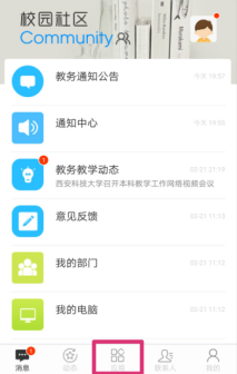 3.进入“西科教务”,在屏幕下方打开“应用”,在“业务直通车”中打开“毕业设计系统”即可。初次登录“大学生毕业设计(论文)管理系统”,需要绑定手机号以及修改系统密码,原密码请输入“统一身份认证密码”,新密码自行设定即可。